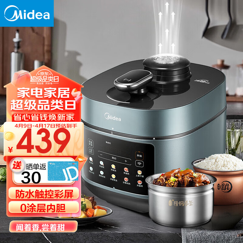 美的(Midea) 电锅 电压锅沸腾浓香家用加厚双胆大火力高压锅多功能预约定时双胆电饭煲 【0涂层内胆】 5L价格:699.00元!