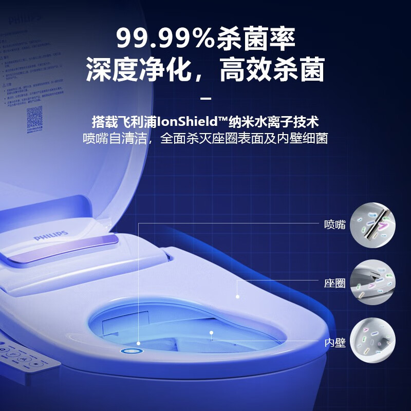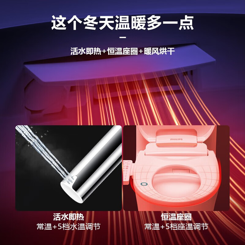 飞利浦(PHILIPS)智能马桶盖除菌即热式 智能马桶盖 活水即热 加热坐便盖AIB1822价格:1399.00元!