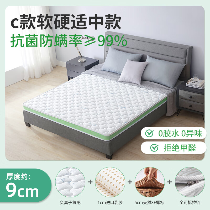 亿隆(yilong)椰棕床垫棕垫硬棕榈床垫子床垫9CM(含1CM乳胶)负离子0.8*2价格:556.14元!