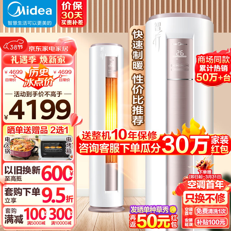 美的(Midea)空调 2匹智行 新三级能效变频冷暖自清洁智能家电 客厅立式空调柜机 KFR-51LW/BDN8Y-YA400(3)A价格:4399.00元!