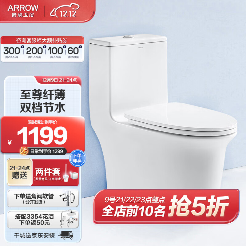 箭牌(ARROW)虹吸马桶家用节水坐便器普通座便抽水坐厕大冲力 豪华纤薄AE1021L价格:1579.00元!