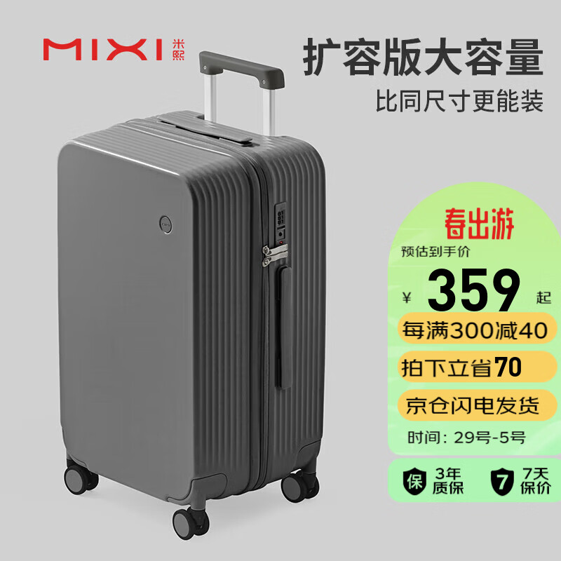 米熙高颜值拉杆箱行李箱大容量密码箱轻音轮旅行箱包男24英寸矿岩灰83价格:429.00元!