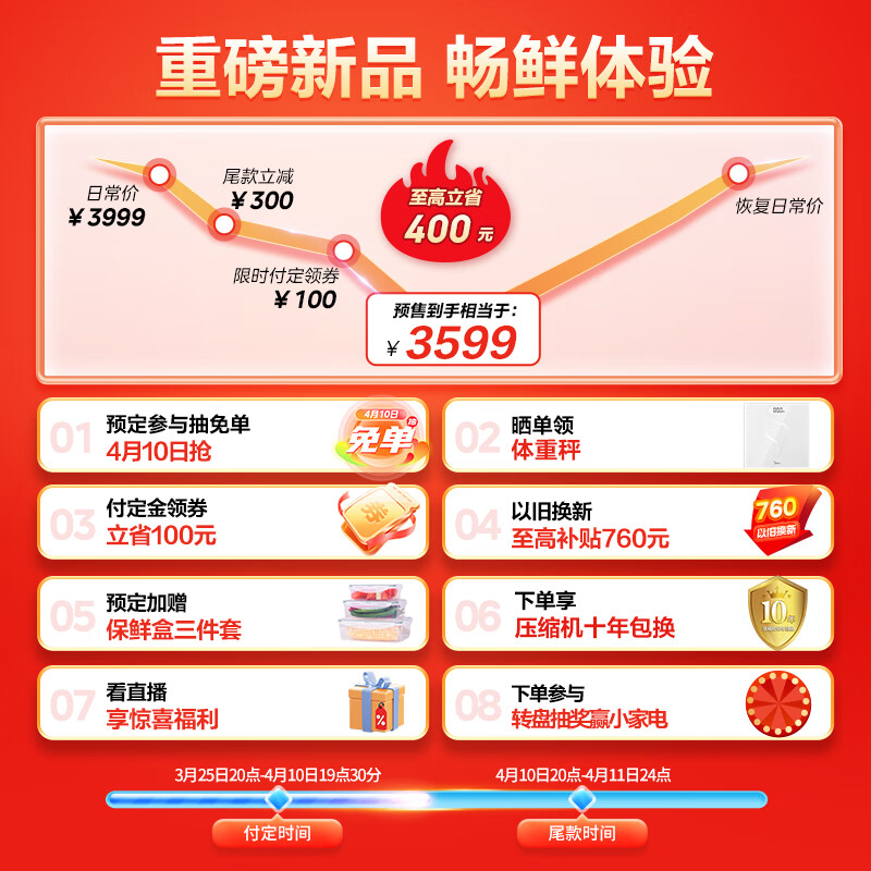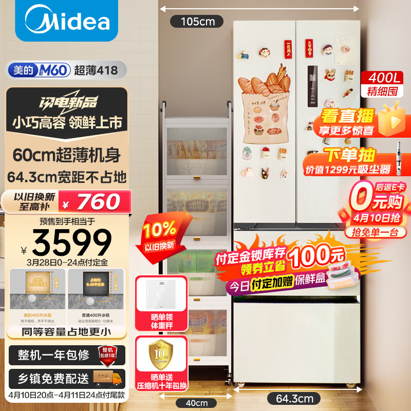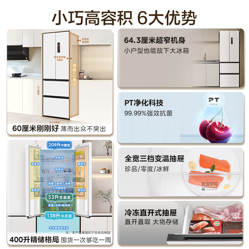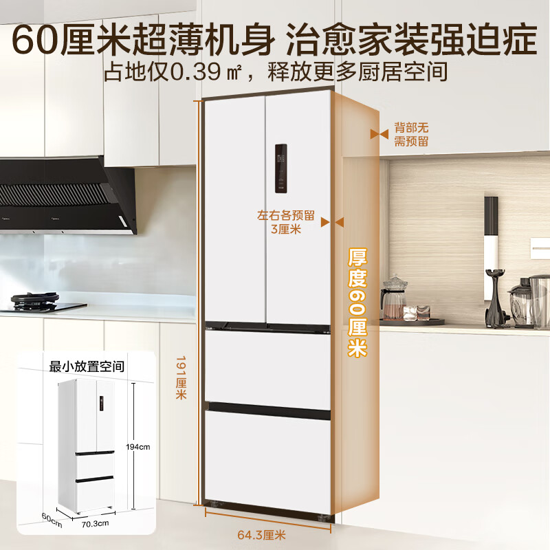 美的(Midea)M60系列418法式多门四开门电冰箱超薄小户型家用一级能效变频大容量无霜净味MR-418WFPE白色价格:3999.00元!