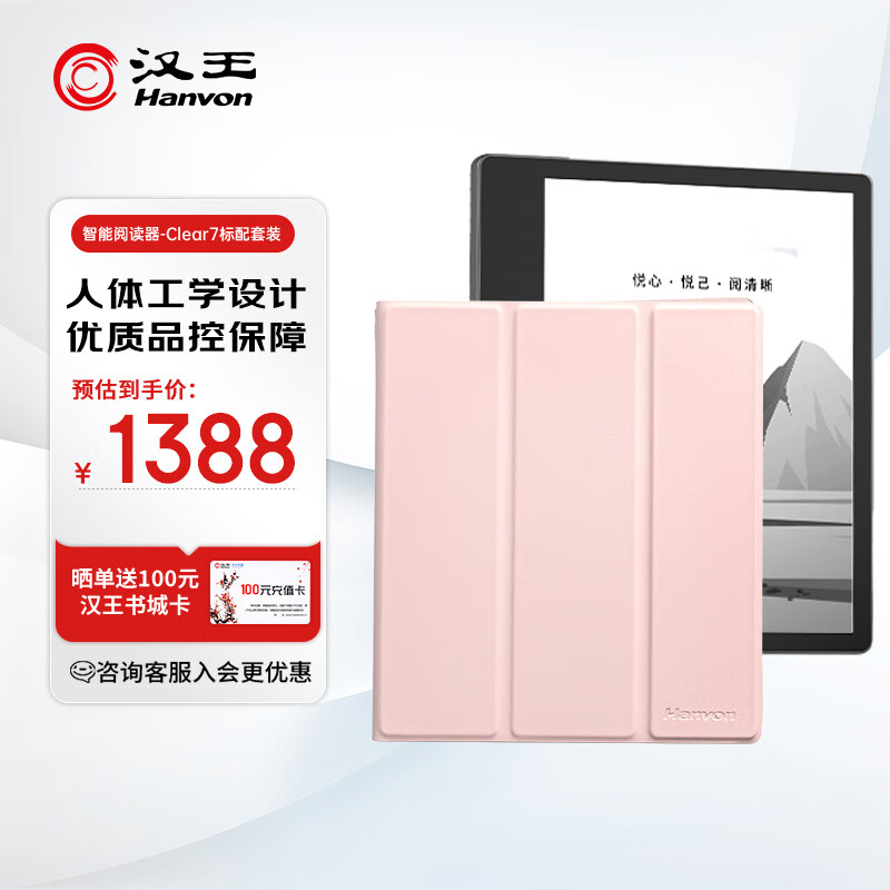 汉王(Hanvon) Clear 7英寸电子书阅读器平板 墨水屏电纸书 便携阅读电子笔记本樱花粉支架保护套.套装价格:1388.00元!