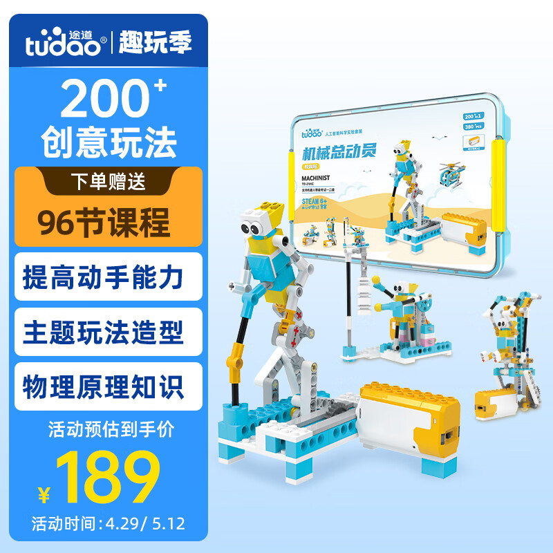 途道(tudao)科学实验套装机械总动员儿童早教玩具电动积木拼装男女孩生日礼物价格:189.00元!