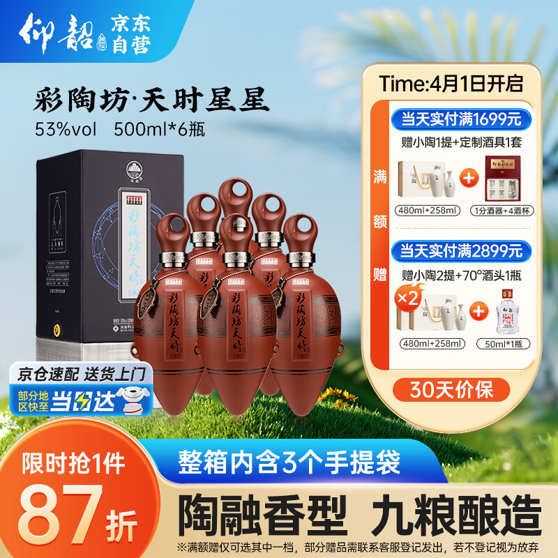 仰韶彩陶坊 天时星星 陶融型白酒 53度 500ml*6瓶 整箱装 高端商务价格:2683.00元!