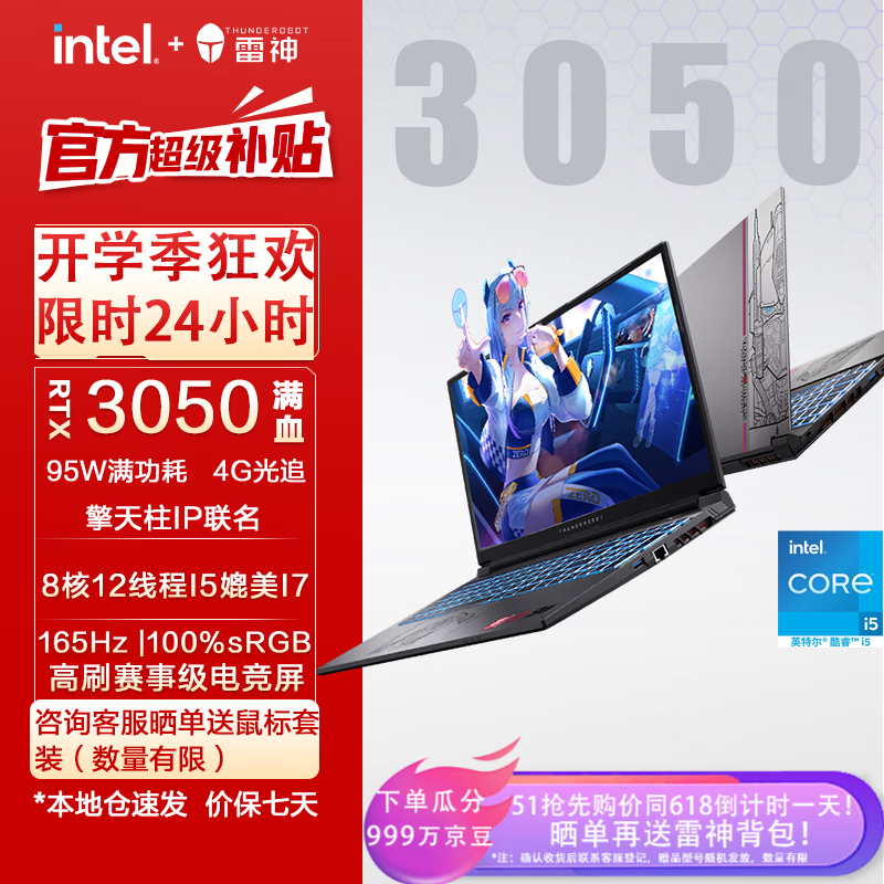 雷神(ThundeRobot)911MT黑武士15.6英寸独显轻薄游戏本骨灰玩家级剪辑AI设计师编程移动工作站笔记本电脑变形金刚IP 酷睿i5|3050|16G|165Hz擎天柱价格:6999.00元!