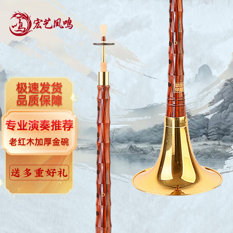 宏艺凤鸣(HongYiFengMing)老红木D调加厚金碗成人初学者教程通用演奏民间唢呐全套价格:360.00元!