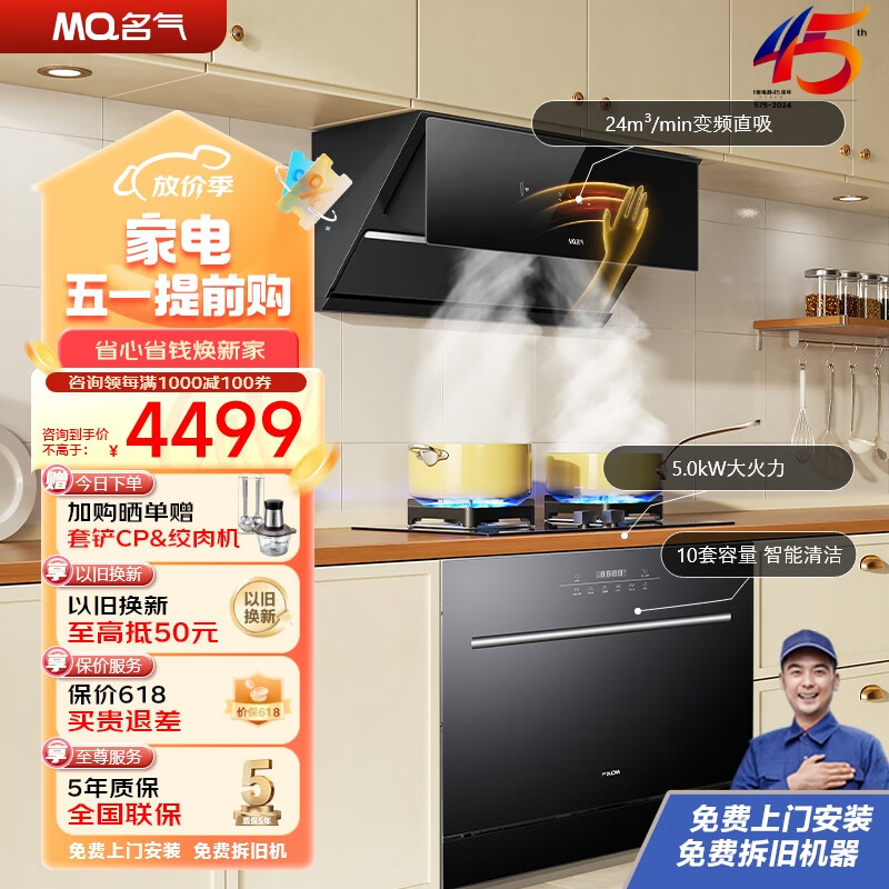 名气(MQ)老板抽油烟机侧吸变频油烟机烟灶套装家用24吸力960变频静压燃气灶洗碗机三件套S1+B510AT+091W价格:4599.00元!