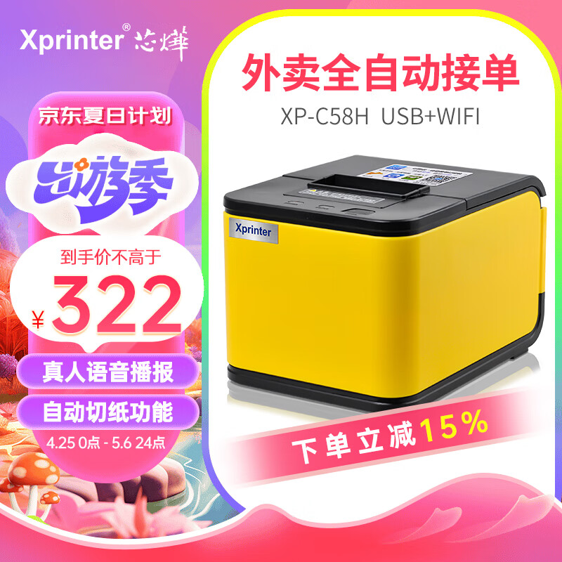 芯烨(XINYE)XP-C58H 外卖全自动接单打印机自动切纸 美团饿了么百度热敏云打印机 票据单收银纸小票机WIFI版价格:379.00元!