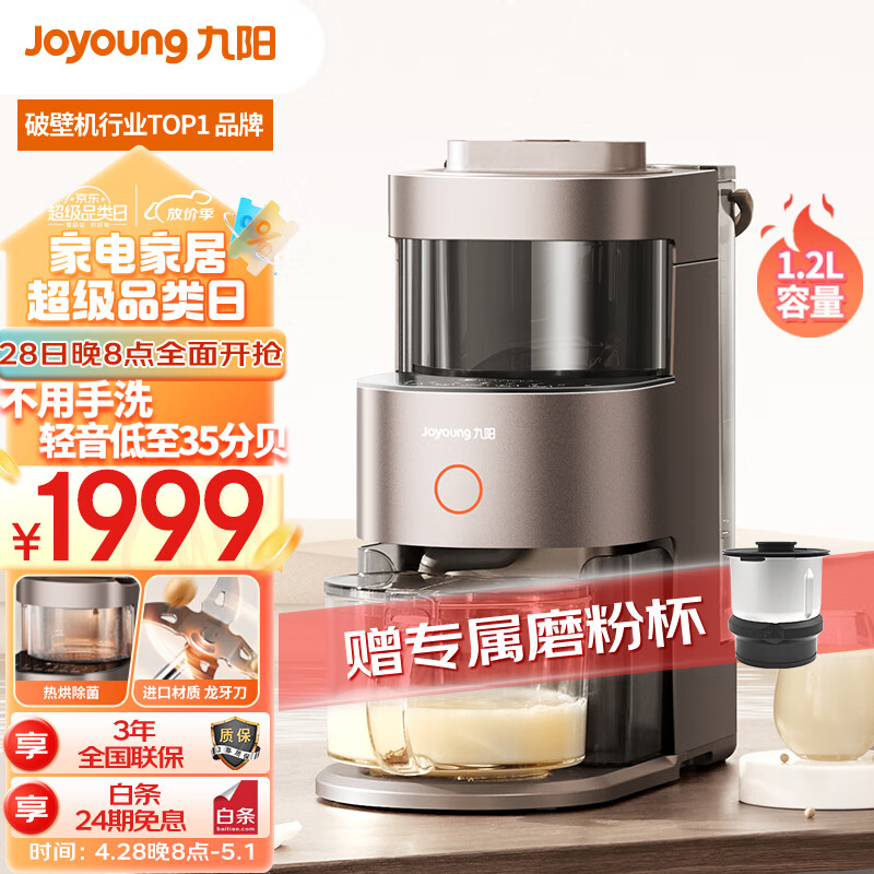 九阳免手洗破壁机 低噪音不用手洗高端多功能预约热烘除菌榨汁机轻音 豆浆机 Y1升级版价格:1999.00元!