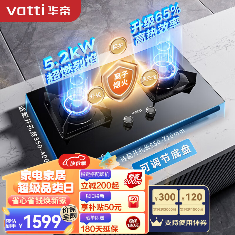 华帝(VATTI)燃气灶天然气灶家用嵌入式双灶具 5.2kW猛火台嵌两用换灶不改孔易洁灶台全进风JZT-i10076B价格:1599.00元!