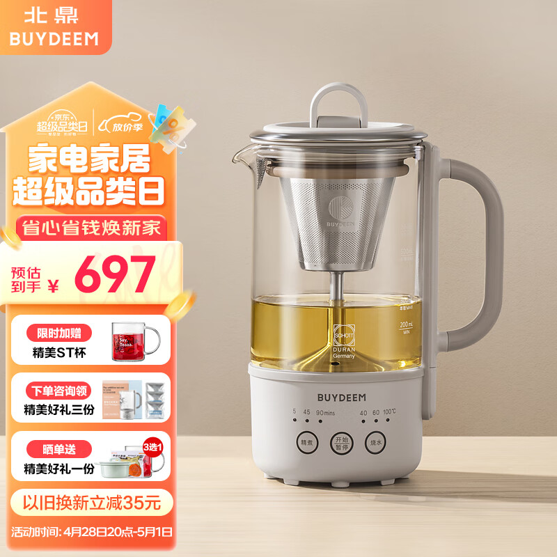 北鼎(Buydeem)养生壶电水壶迷你养生杯办公室便携一体式保温煮茶器 套装K32燕麦白+迷你萃取篮价格:697.00元!