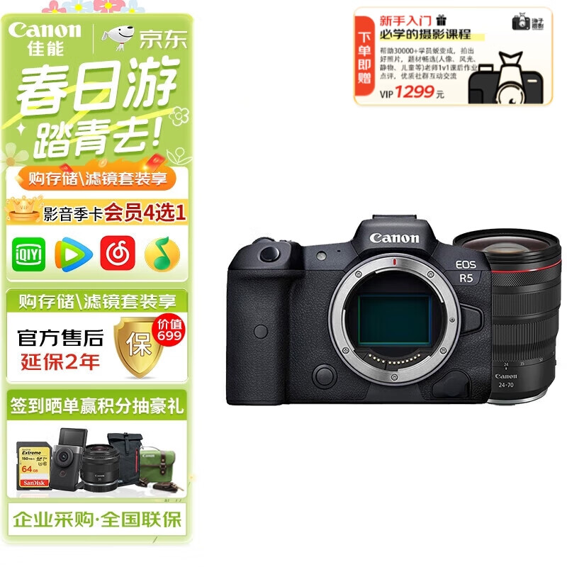 佳能(Canon)EOS R5 +RF 24-70mm F2.8 USM镜头 扫街旅拍套装价格:41999.00元!