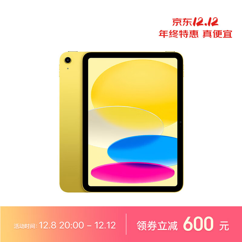 Apple iPad(第 10 代)10.9英寸平板电脑 2022年款(64GB WLAN版/学习办公娱乐游戏/MPQ23CH/A) 黄色价格:3599.00元!