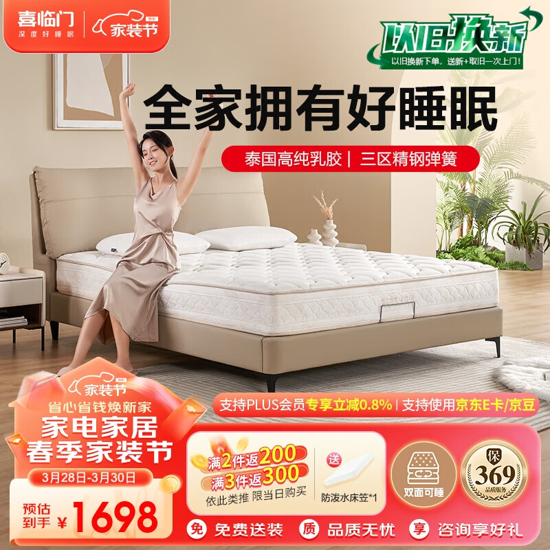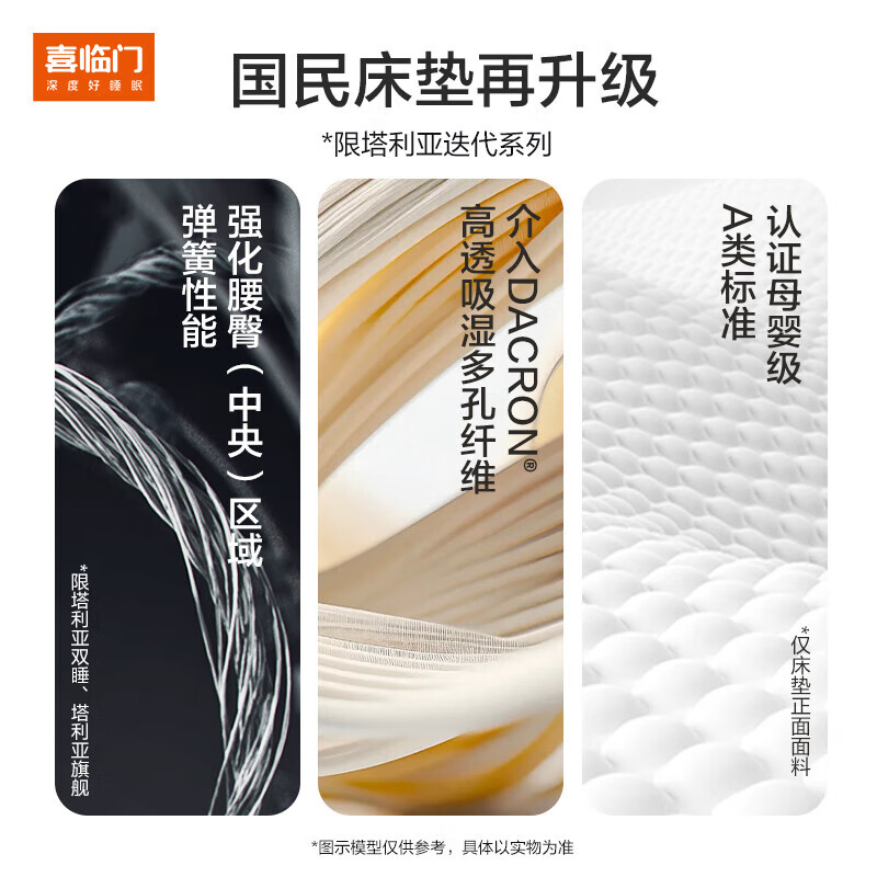 喜临门高纯乳胶床垫 3D椰棕床垫 三区整网弹簧床垫 塔利亚双睡1.5x2米价格:1698.00元!