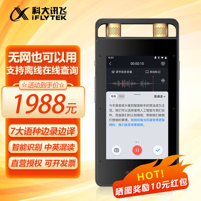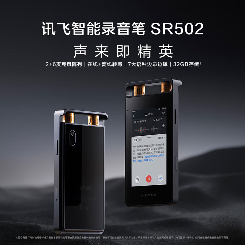 科大讯飞智能录音笔SR502 32G+10G云存储 专业录音降噪 实时在线离线转写翻译 视频转写 OCR识别价格:1999.00元!
