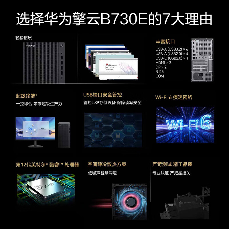 华为擎云B730E 商用办公台式电脑主机 (酷睿12代i5 16G 256G SSD+1T HDD)23.8英寸显示器 超级终端价格:4249.00元!