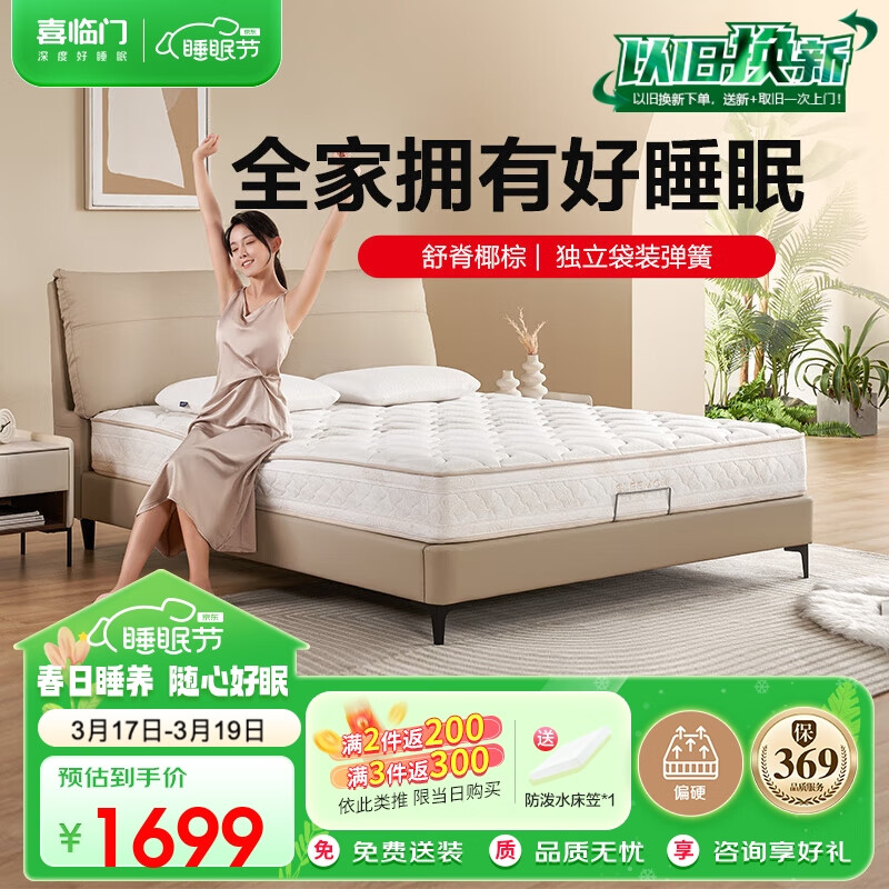 喜临门床垫 3D椰棕床垫 独袋弹簧偏硬床垫 塔利亚舒脊版1.35x1.9米价格:1699.00元!