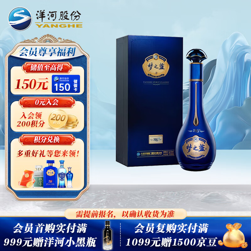 洋河 梦之蓝M6+ 52度 550ml 单瓶装 绵柔浓香型价格:928.00元!