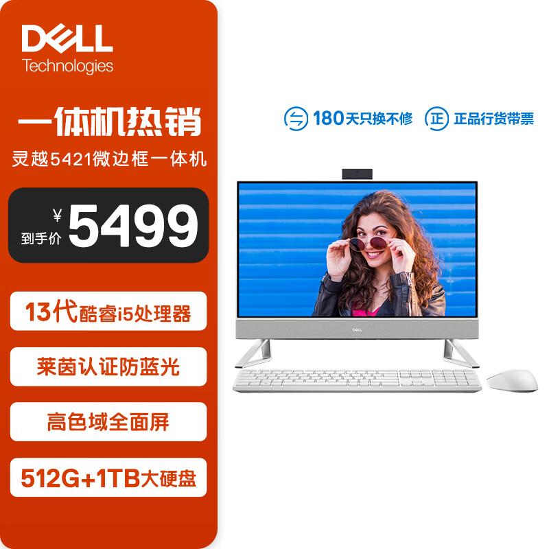 戴尔(Dell)灵越5421一体机电脑(酷睿13代i5-1335U 16G 512GSSD+1T)白 23.8英寸大屏显示器价格:5499.00元!