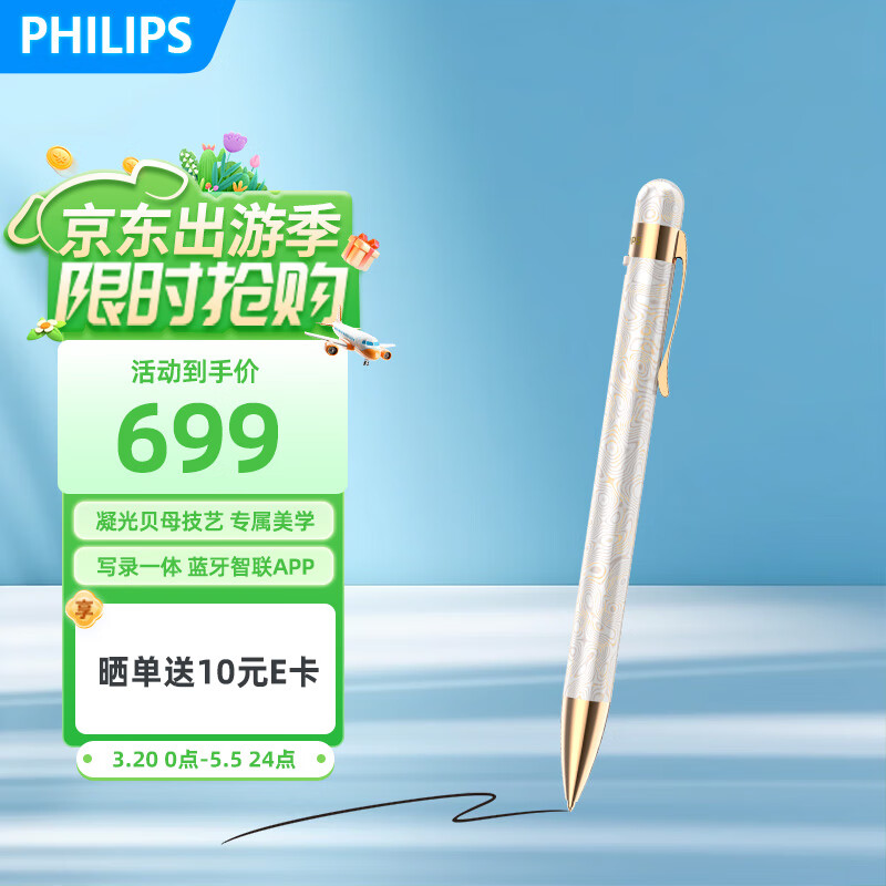 飞利浦(PHILIPS)录音笔VTR5900Pro 象牙白 专业语音转文字高清降噪便携一键操作录音器32G蓝牙版价格:799.00元!