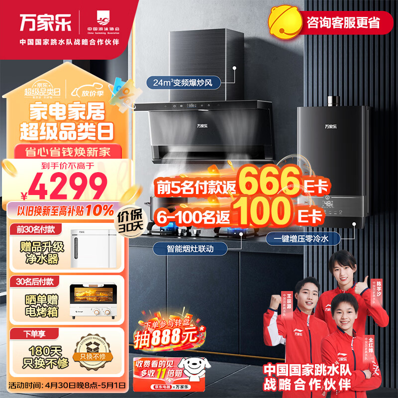 万家乐 抽油烟机 24m3/min顶侧三腔变频巡航烟灶联动13L零冷水烟灶热三件套装TAK8+KV063B+13DL1天然气价格:4499.00元!