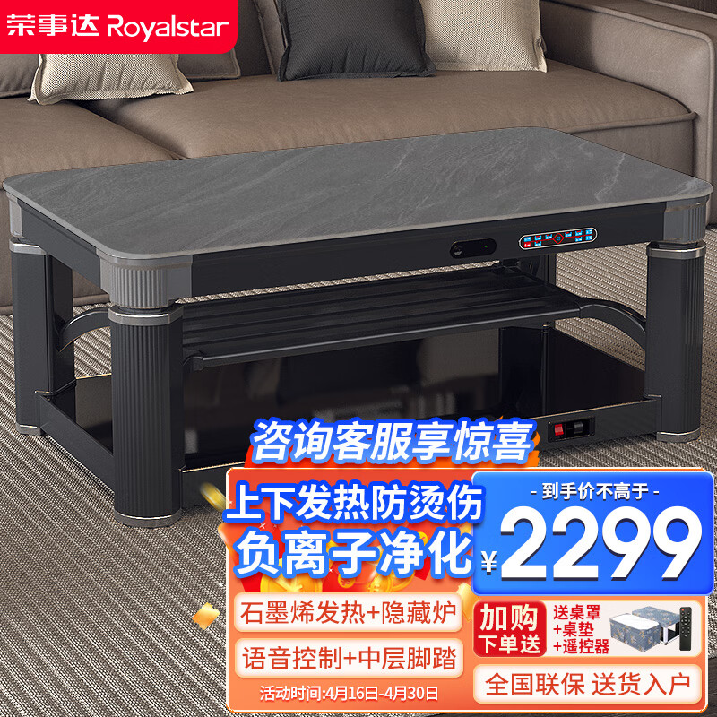 荣事达电暖桌石1.38米墨烯发热烤火茶几带语音控制升降取暖桌多功能电暖炉取暖器长方形餐桌烤火桌RC-C9价格:2394.00元!