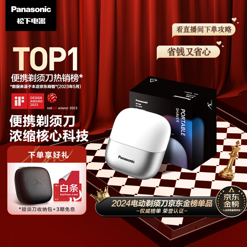 松下(Panasonic)小方盒剃须刀电动便携往复式刮胡刀磁悬浮马达进口三刀头生日礼物男士520情人节送男友老公CM30白价格:577.00元!