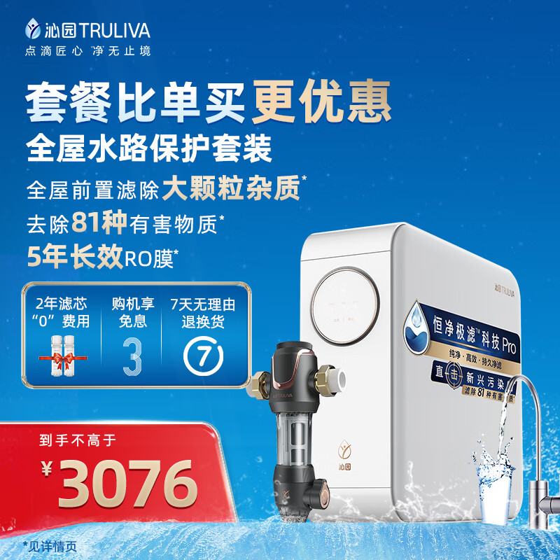沁园(TRULIVA)小白鲸Pro1000G二件套装 净水器UR-S51046i+前置过滤器P-A5510 全屋净水套装价格:3076.00元!