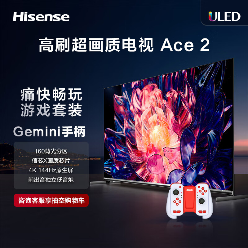 海信电视65E75K+运动加加Gemini分体手柄三合一体感交互手柄套装 65英寸 液晶智能平板电视机 以旧换新价格:5198.00元!