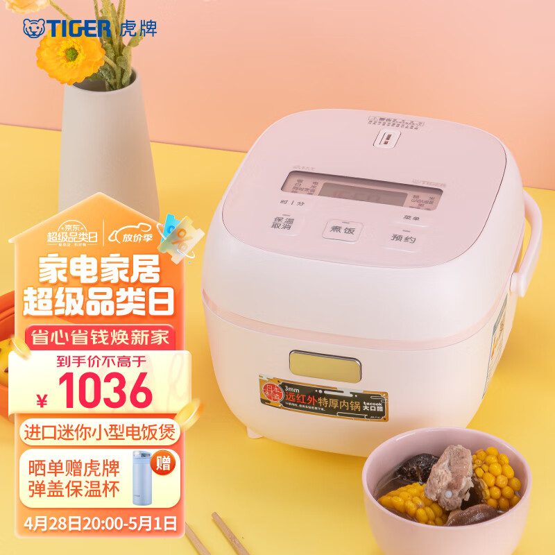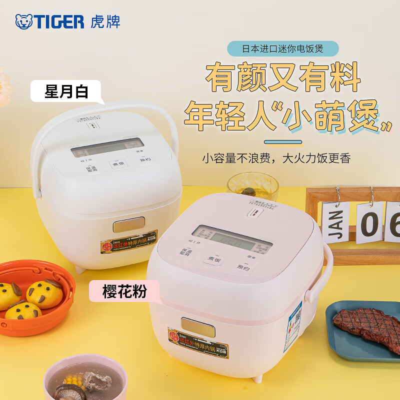 虎牌(TIGER)进口迷你小型电饭煲1-2人份 JBS-T55C 樱花粉 家用1.6L价格:1236.00元!