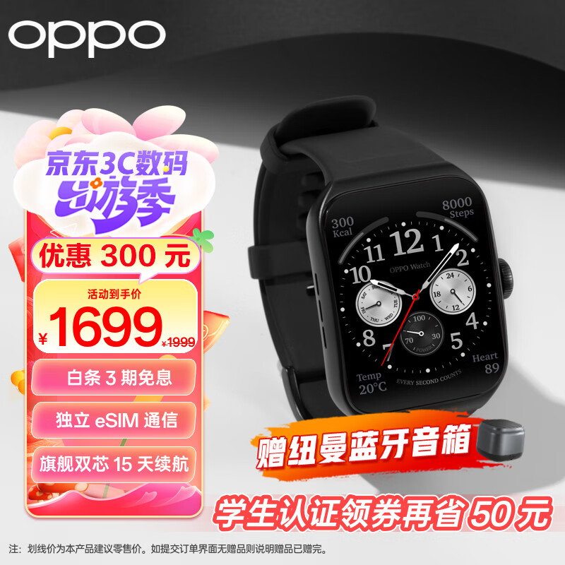 OPPO Watch 3 Pro 铂黑 全智能手表 健康运动手表男女eSIM电话手表 血氧心率监测 适用iOS安卓鸿蒙手机价格:1999.00元!