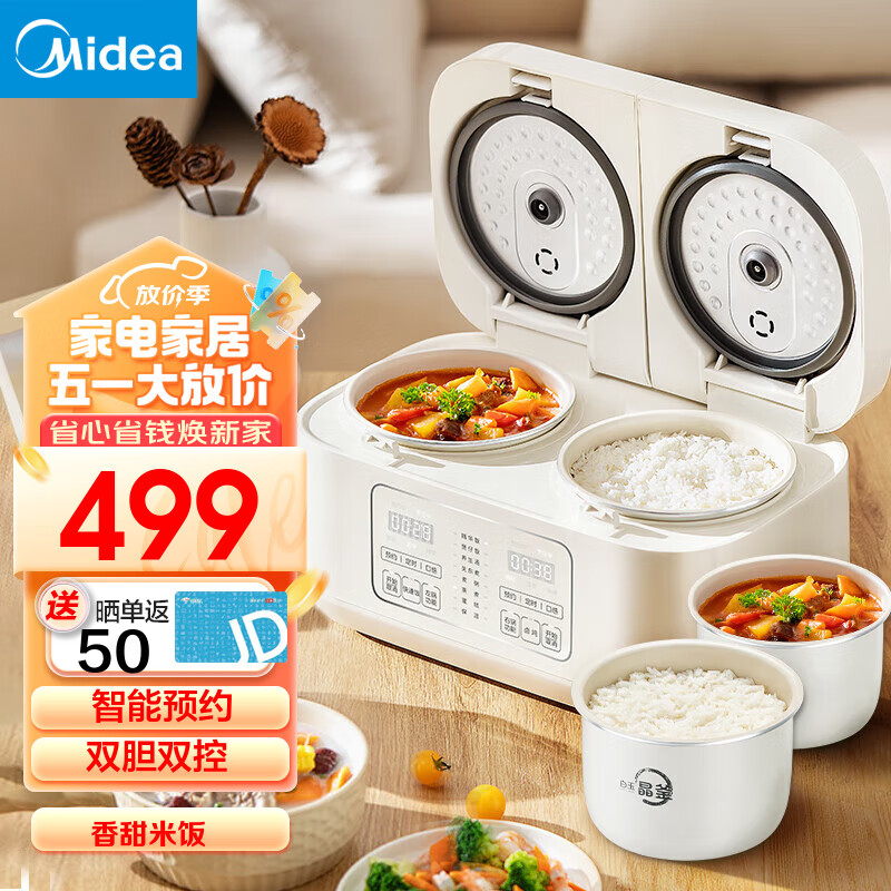 美的(Midea)电饭煲 双胆双控智能预约白玉晶釜内胆家用商用小型 一体家用迷你电饭锅 3-4-8人用 双子座电饭煲 3.2L价格:799.00元!