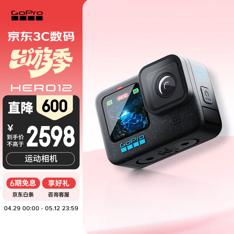GoPro HERO12 Black 运动相机 户外摩托骑行 潜水防水防抖相机 Vlog数码运动摄像机 旅拍照相机价格:2598.00元!
