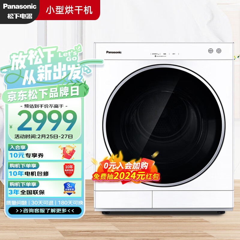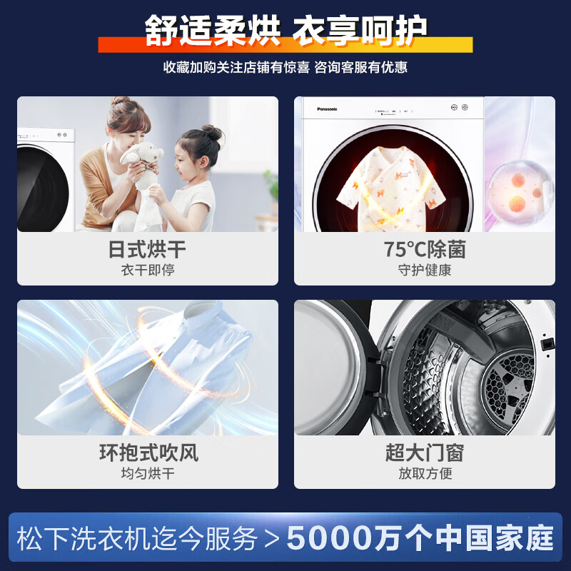 松下(Panasonic)烘干机 6kg日式烘干机小型家用 干衣机 75度除菌 除皱去味 免熨烫 即干即穿 NH-6011P价格:2999.00元!