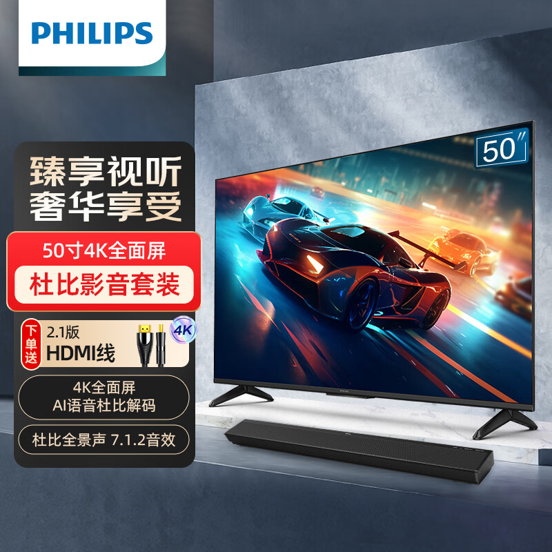 飞利浦(PHILIPS)50英寸电视50PUF7007+B600杜比全景声回音壁套装组合 4K高清 7.1.2音效价格:3498.00元!