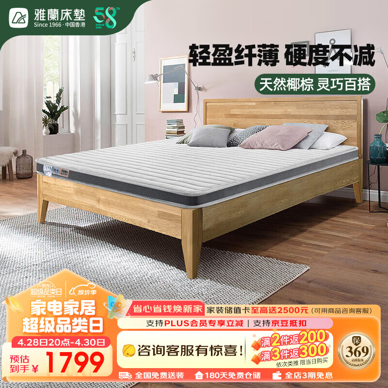 雅兰(AIRLAND)椰棕床垫舒脊学生薄床垫宿舍床垫 硬核乳胶椰棕款【10cm】1.5*2米价格:2099.00元!