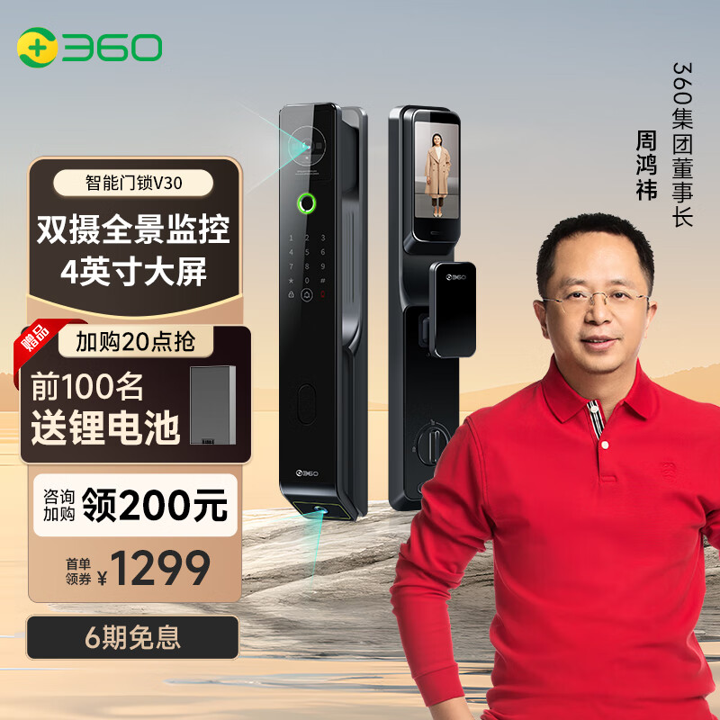 360智能门锁V30指纹锁密码锁家用智能锁电子锁入户门自动门锁双摄像头大屏防盗锁可视猫眼远程解锁价格:1499.00元!