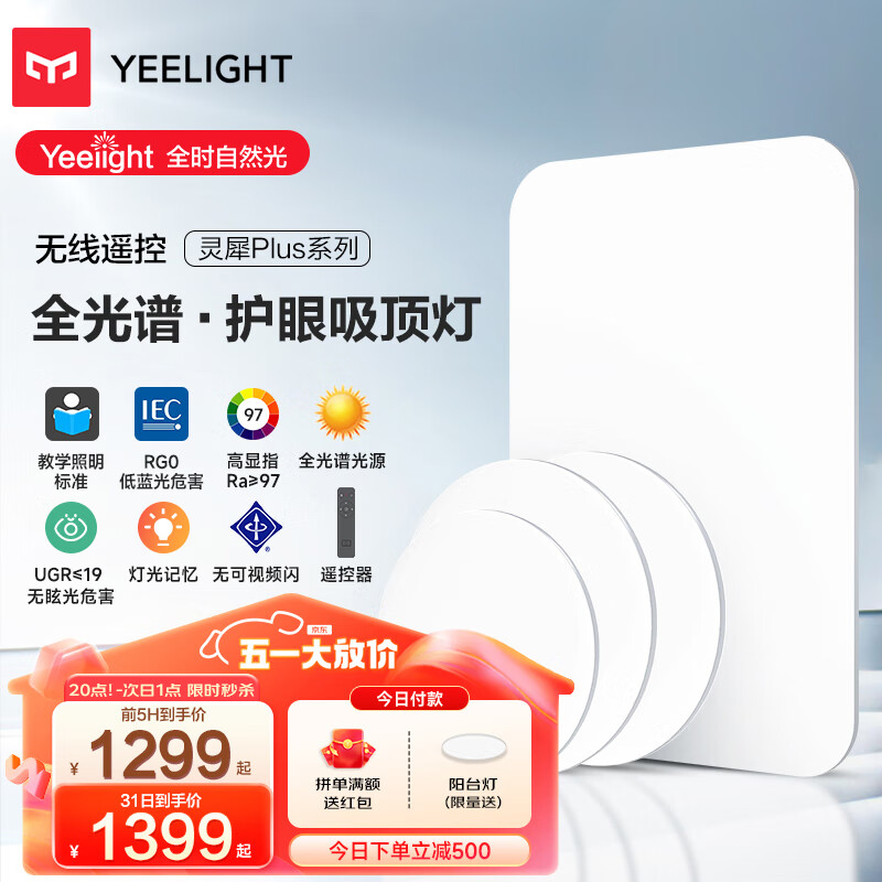Yeelight易来灵犀Plus全光谱低蓝光护眼led吸顶灯客厅卧室超薄调光版灯具价格:1999.00元!