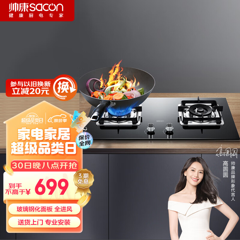 帅康(Sacon)燃气灶 5.0kW大火力猛火灶 煤气灶双灶双眼灶 家用嵌入式台式两用灶具 天然气灶JZT-E5-61B价格:699.00元!