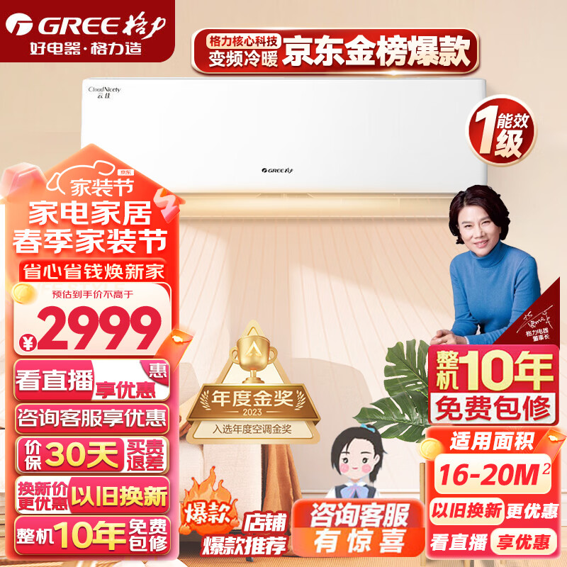 格力(GREE)空调挂机 1.5匹 云佳 新一级能效 变频冷暖 家用壁挂式空调挂机KFR-35GW/NhGc1B价格:2999.00元!