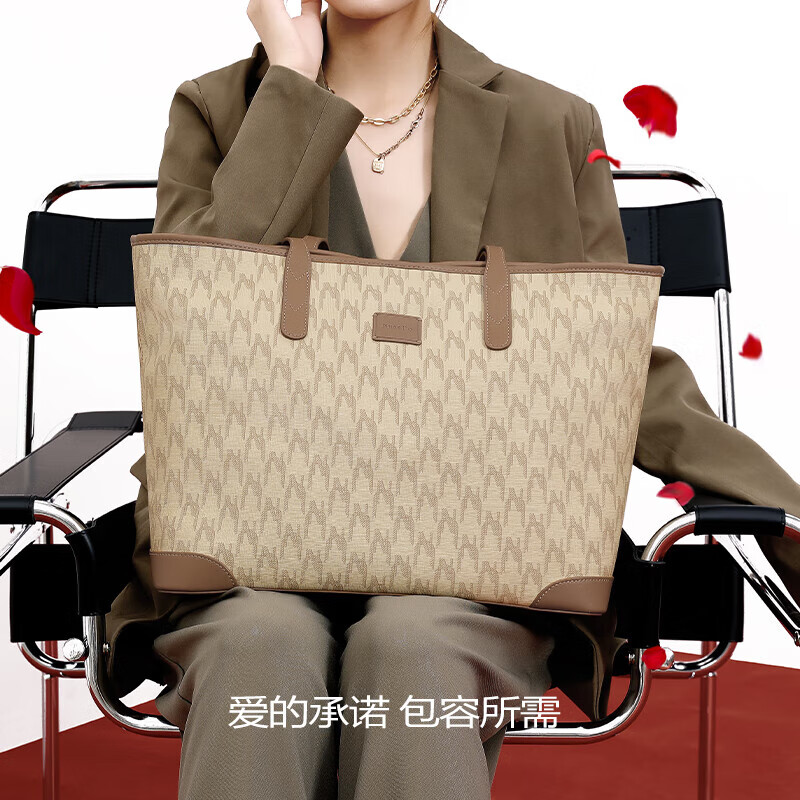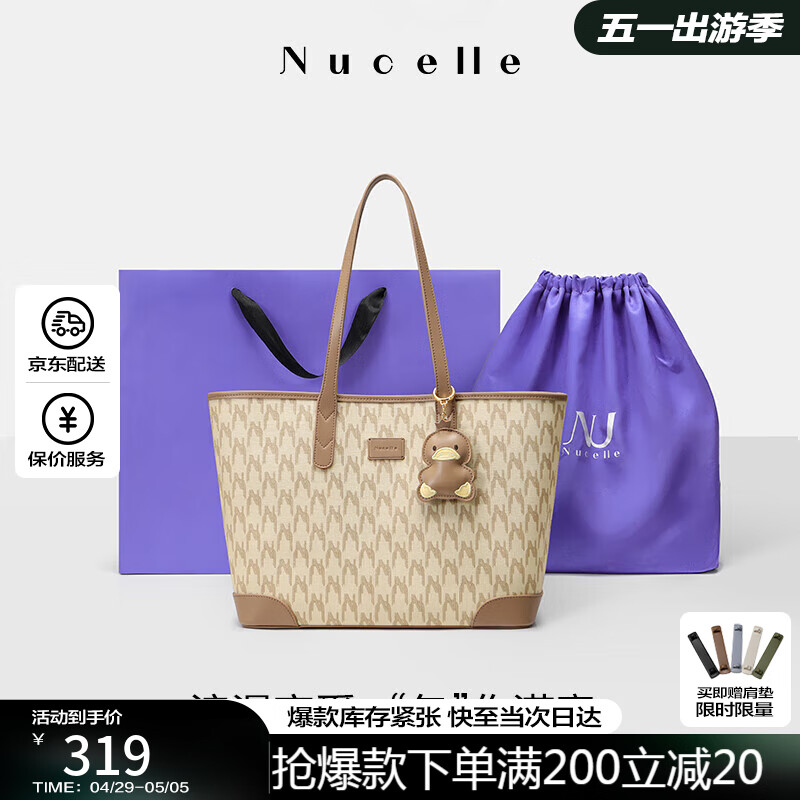 纽芝兰(NUCELLE)鸭鸭托特包包女包大容量通勤包包单肩包大学生上课女手提包14吋电脑包生日礼物520情人节礼物送女友老婆母亲节礼物实用走心送妈妈?072岩棕色礼袋装价格:339.00元!