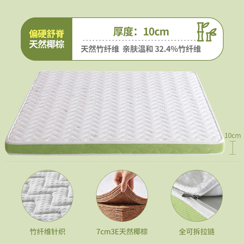 亿隆(yilong)椰棕床垫棕垫硬棕榈床垫子天然乳胶螨床垫10CM 竹纤维1.35*1.9价格:687.96元!