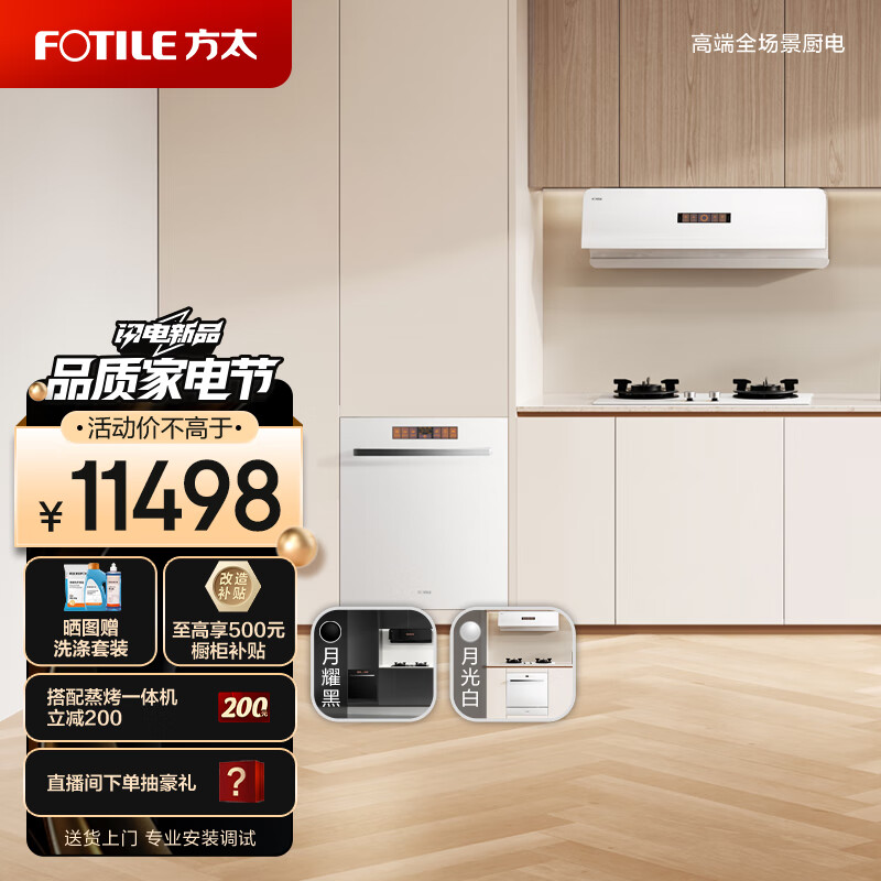 方太(FOTILE)烟灶洗三件套 24巡航风量烟机 5kW燃气灶 15套洗碗机 F1-W+THF1-W+B-VF1.i价格:11498.00元!