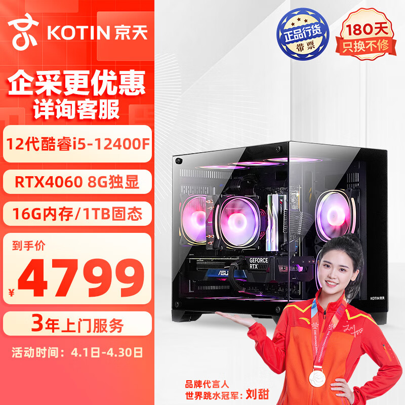 京天Strike 766 i5-12400F/RTX4060 8G/16G DDR4/1TB固态电脑台式机电竞游戏直播台式机组装电脑主机价格:4799.00元!