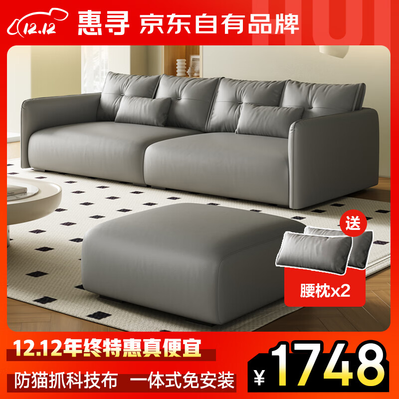 惠寻 京东自有品牌 科技布艺沙发小户型客厅直排四人位 2.8米+脚踏价格:1778.00元!