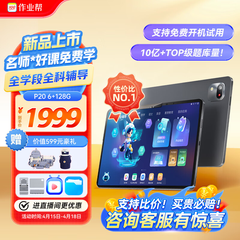 作业帮AI学习机P20 平板小学到高中全科作业辅导举一反三 精讲视频 银河大模型写作指导12''6+128G价格:1999.00元!