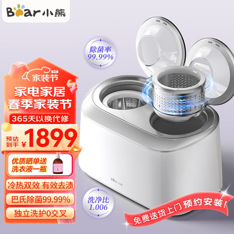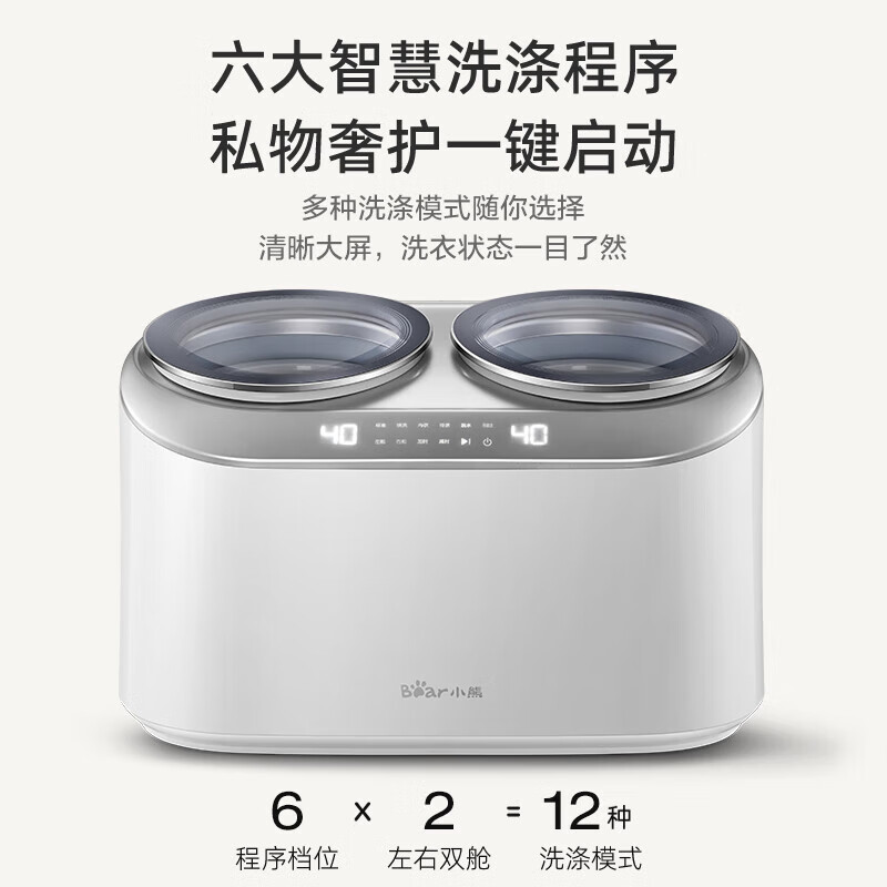 小熊(Bear)双舱分桶内衣裤洗衣机 全自动波轮迷你洗衣机高温洗脱一体 专用小型迷你清洗机 礼物送女友 【双舱分洗,健康0交叉】XYJ-E04M1皓月银价格:1899.00元!