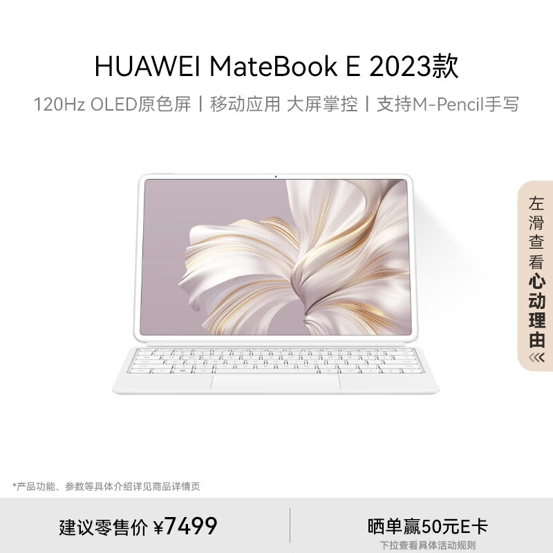 HUAWEI MateBook E 华为二合一平板电脑笔记本屏办公学习12代酷睿i7 16+512GB 白+白键盘价格:7499.00元!